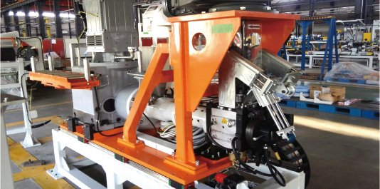 ● 革新輪胎胎面生產(chǎn)工藝,代替龐大的生產(chǎn)線 ● 提高輪胎的動平衡性和均勻性 ● 裝備齒輪泵的高產(chǎn)量擠出機 ● 特殊的螺桿設(shè)計,取消旁壓輯,實現(xiàn)連續(xù)喂膠無斷膠 ● 特殊的機頭設(shè)計 ● PID控制:根據(jù)下游設(shè)備自動調(diào)整擠出機轉(zhuǎn)速 | ● 多種鎖門形式: 側(cè)鎖式三爪鎖門和側(cè)鎖式框架鎖門 ● 高性能多通道溫控,控溫精準, 溫度遠程智能調(diào)節(jié),自動排氣 ● 自動潤滑系統(tǒng),定時定量定點潤滑 ● 全自動液壓系統(tǒng),安全可靠 ● 模塊化安裝 |
