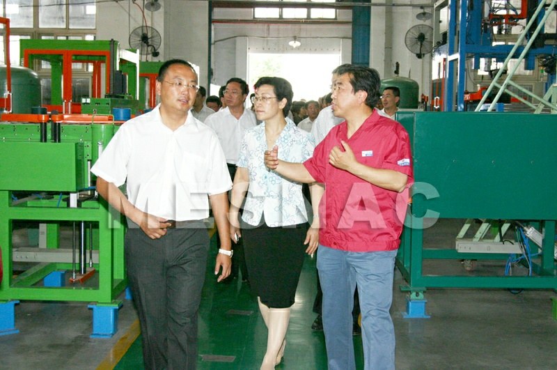 1、7月13日,由中共青島市李滄區(qū)委書記王作安帶隊的“李滄區(qū)政府考察團”150余人到四方區(qū)學習參觀,在四方區(qū)委書記吳淑玲、區(qū)長卞建平的陪同下來到我公司進行了考察。在聽取了董事長袁仲雪關于公司情況的匯報后,考察團參觀了科教基地園區(qū)裝配車間和安裝調試車間。