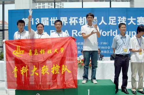 7月23日,在青島市舉辦的第十三屆FIRA世界杯機(jī)器人足球大賽上,青島科大--軟控隊(duì)獲亞軍。該項(xiàng)賽事首次在青島市舉辦,共有世界各地的50支隊(duì)伍參加。青島科大--軟控隊(duì)在仿人型機(jī)器人8人舞蹈項(xiàng)目中奪得亞軍,并在其它項(xiàng)目中分獲4個(gè)季軍。