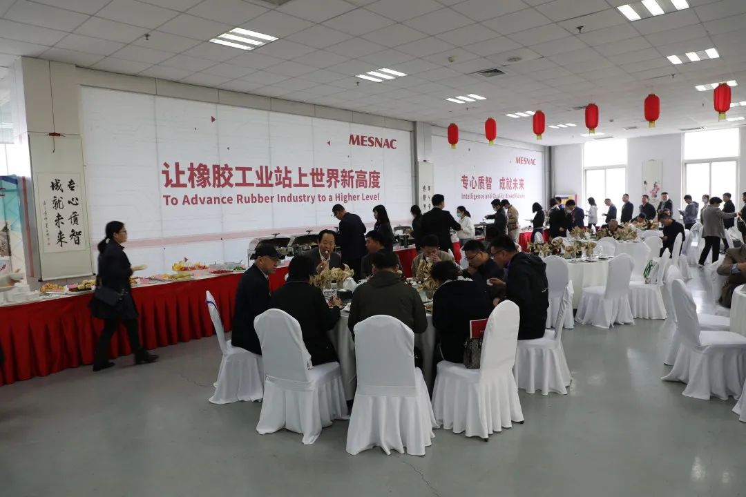 4月23日,中國(guó)橡膠年會(huì)參觀團(tuán)一行近60人到訪軟控膠州產(chǎn)業(yè)園,青島軟控機(jī)電工程有限公司副總經(jīng)理王建軍、俞一航等熱情接待了來(lái)訪客人。