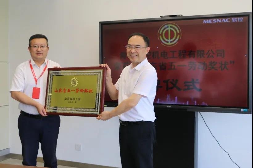 7月9日,膠州市總工會主席姜鵬、副主席孫衛(wèi)剛、生產(chǎn)部部長胡強一行到膠州裝備產(chǎn)業(yè)園為青島軟控機電工程有限公司榮獲2021年“山東省五一勞動獎狀”進行授牌。軟控黨委書記、副總裁魯麗娜代表公司對領(lǐng)導(dǎo)們的到來表示了熱烈的歡迎和衷心的感謝;軟控機電公司總經(jīng)理武守濤代表公司接受授牌。