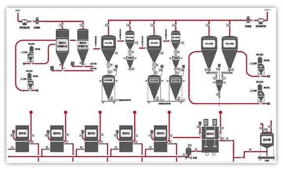 原料輸送:可實現(xiàn)大批量、遠距離、高效率輸送;快速準確的取料并輸送到指定位置;管道封閉輸送有效避免污染。