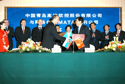 2004年5月11日,我公司與斯洛伐克瑪達道爾(MATADOR)公司在青島海天大酒店舉行“輪胎設(shè)備技術(shù)合作簽約儀式”。斯洛伐克副總理帕沃爾 羅斯克(Pavol Rusko)先生、青島市人大常委會副主任馬論業(yè)、青島市委副書記、常務(wù)副市長崔錫柱、中國橡膠工業(yè)協(xié)會理事長鞠洪振等有關(guān)領(lǐng)導(dǎo)出席了簽約儀式。