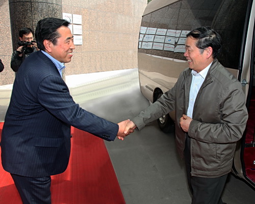 4月28日,國家工業(yè)和信息化部黨組成員、副部長楊學山一行在青島市委常委、副市長???,四方區(qū)委書記紀敏,四方區(qū)區(qū)長張杰等相關領導的陪同下,到國家輪胎工藝與控制工程技術研究中心(簡稱“中心”)參觀考察。中心主任、公司董事長袁仲雪,中心副主任、副董事長張焱等領導熱情接待了楊學山一行。