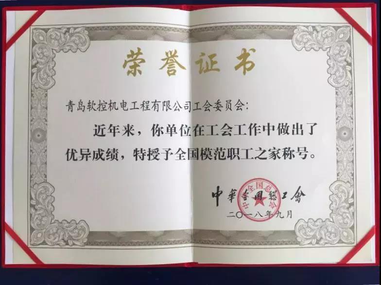 近日,中華全國總工會下發(fā)了《關(guān)于表彰“全國模范職工之家”的決定》,軟控機(jī)電工會榮獲“全國模范職工之家”榮譽(yù)。