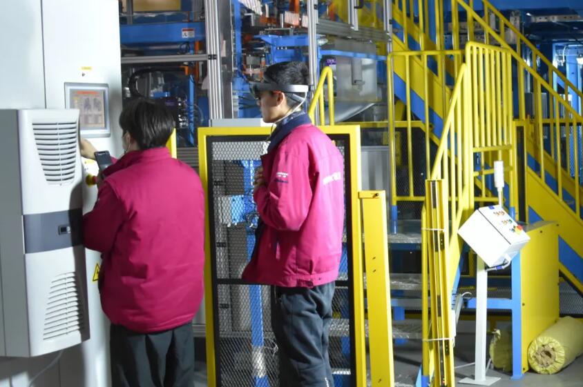 在具體操作過程中,軟控工程師由一人佩戴MR眼鏡,身處大洋彼岸的客戶通過網(wǎng)絡連接就可以在電腦上看到廠內(nèi)小料設(shè)備的實時全景,全面了解設(shè)備的整體情況及相關(guān)細節(jié)。負責此次驗貨的工程師介紹到:通過視頻對話,客戶與工程師進行實時溝通交流,了解設(shè)備的整體狀況、進行功性能展示等,客戶通過語音和編輯畫面對設(shè)備細節(jié)及關(guān)鍵點提出疑問,我方工程師團隊予以演示并給予專業(yè)解答。MR的高清晰、全方位的視頻畫面實時傳輸,使客戶技術(shù)人員如同身臨其境,達到實地勘驗的效果。