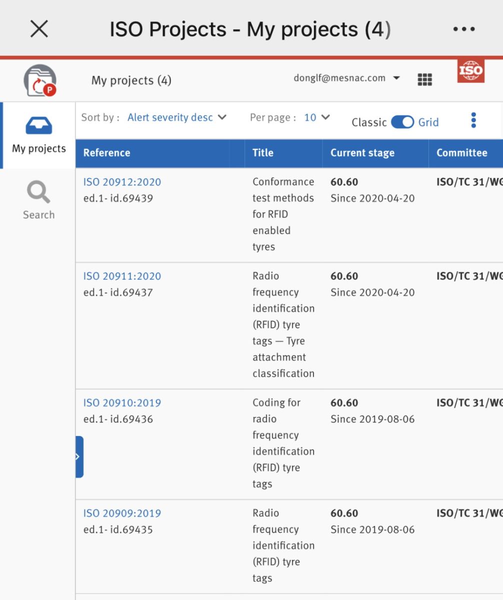 輪胎用RFID電子標簽四項國際標準于2015年10月正式立項,由國際標準化組織ISO/TC31(輪胎、輪輞和氣門嘴國際標準化技術(shù)委員會)下設(shè)的WG10“RFID tyre tags”工作組負責制定;工作組由來自中國、法國、意大利、美國、英國、德國、日本、韓國、芬蘭、加拿大、比利時、泰國、荷蘭、奧地利、阿拉伯聯(lián)合酋長國等國家相關(guān)企業(yè)單位的60余名專家組成。2015年10月至今,WG10工作組先后在布魯塞爾、三亞、馬賽、西雅圖、羅馬、東京、格林維爾、青島等地方召開8次全球工作會議,若干次工作組網(wǎng)絡(luò)會議,討論標準內(nèi)容,解決各方分歧,四項國際標準分別并先后在全球范圍內(nèi)完成CD(委員會階段)投票,DIS(國際標準草案)投票,F(xiàn)DIS(最終國際標準草案)投票,最終形成統(tǒng)一意見。繼2019年8月份,ISO 20909:2019 Radio frequency identification (RFID) tyre tags,ISO 20910:2019 Coding for radio frequency identification (RFID) tyre tags兩項國際標準發(fā)布后,ISO 20911:2020 Radio frequency identification (RFID) tyre tags-Tyre attachment classification, ISO 20912:2020 Conformance test methods for RFID enabled tyres兩項標準于2020年4月20日發(fā)布。目前,ISO/TC31/WG10工作組承擔的輪胎用RFID電子標簽四項國際標準已經(jīng)全部發(fā)布。